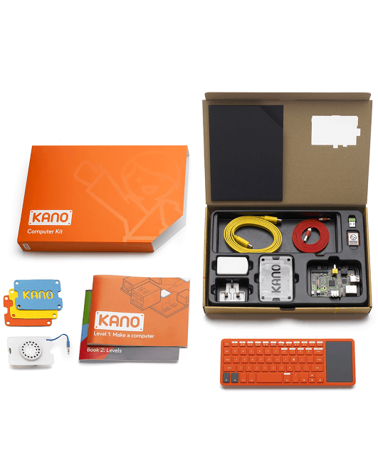 Jak można się domyślić na podstawie zdjęcia, sercem zestawu jest komputer Raspberry Pi (model B). Zawiera on też ilustrowane książki z instrukcjami, kartę 8GB z systemem i materiałami do nauki, głośnik, klawiaturę z touchpadem, obudowę, potrzebne okablowanie, kartę WiFi, a nawet naklejki. Słowem: wszystko co jest potrzebne (poza monitorem) żeby złożyć, uruchomić komputer i zacząć się nim bawić. Jak wielokrotnie w prezentacji podkreśla jeden z autorów, Kano ma być tak wciągające i proste jak klocki Lego. Do tego powinno być tak intuicyjne, że dzieci powinny same sobie umieć z nim poradzić na podstawie instrukcji, bez ciągłego nadzoru dorosłych.