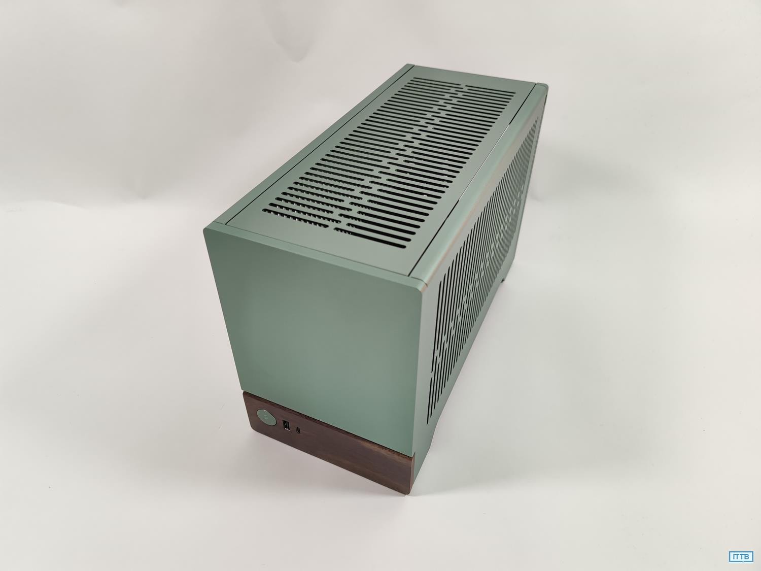 Przód został wykonany z 8 mm anodyzowanego aluminium oraz spód ma wykończenie z drewna drzewa orzechowego. Wygląda to świetnie w szczególności w połączeniu z nietypowym kolorem. Na spodzie mamy też włącznik oraz po jednym złączu USB-C 3.1 Gen2 i USB 3.0. Brakuje mi natomiast złącza audio, które po prostu powinno znaleźć się na froncie.