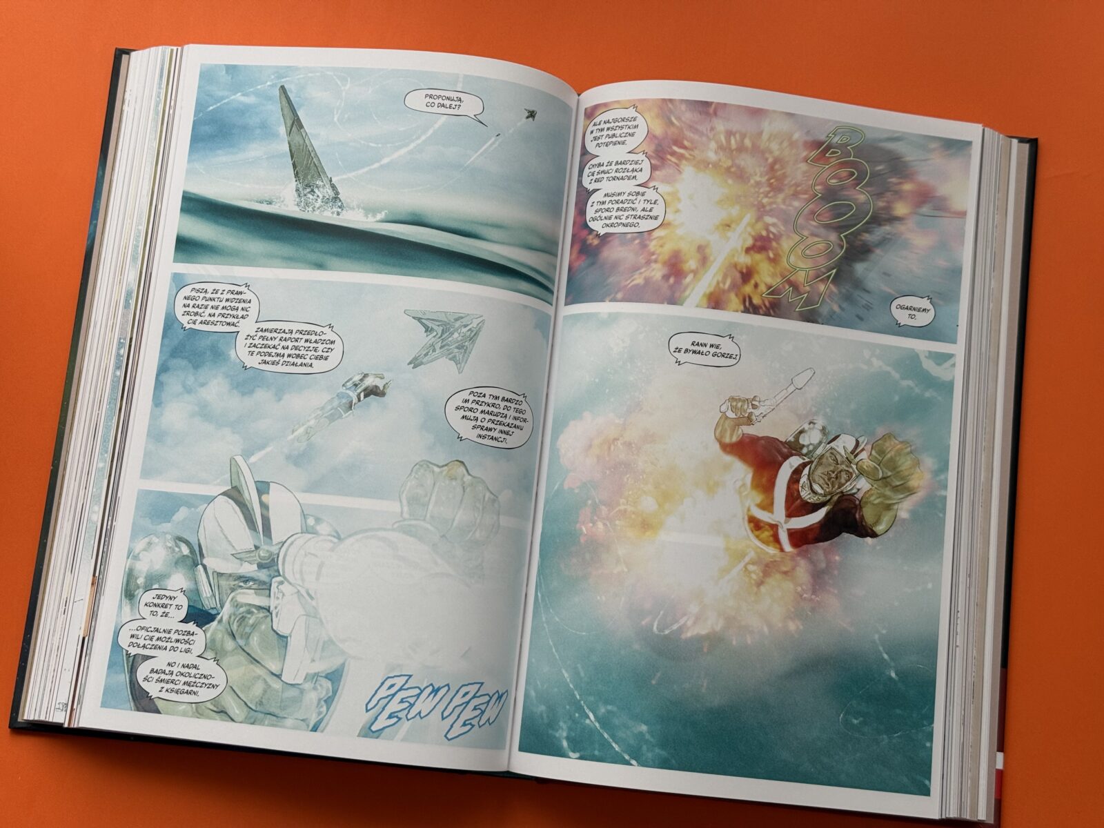 Czytelność układów, plansz i narracja obrazem również stoi na wysokim poziomie. Gdy komiks potrzebuje epickiego rozmachu – dostajemy go; gdy nadchodzi moment introspekcji, cierpienia – rysunki milkną, oddając ciężar emocji. To zdecydowanie jedna z najmocniejszych stron albumu.