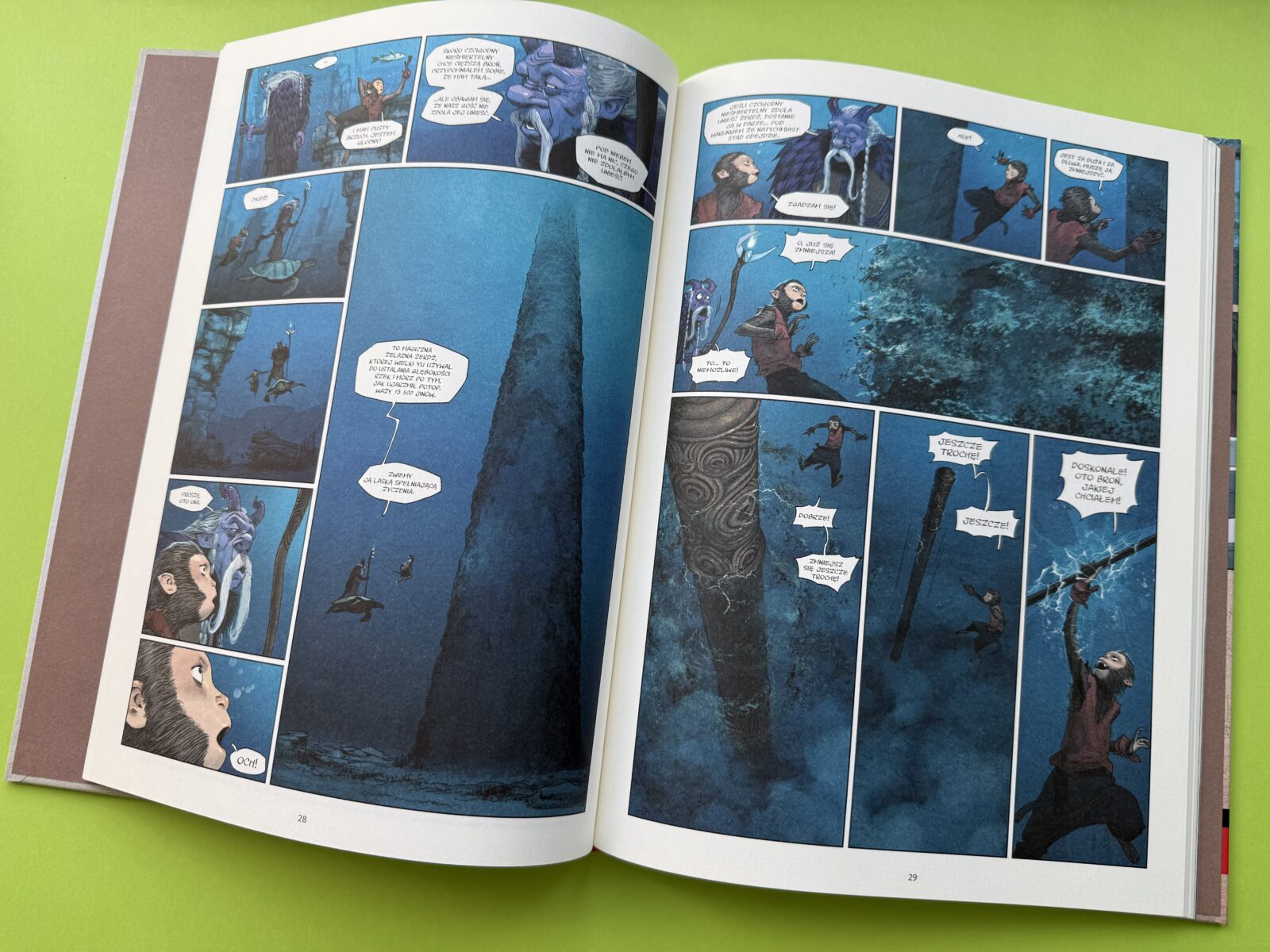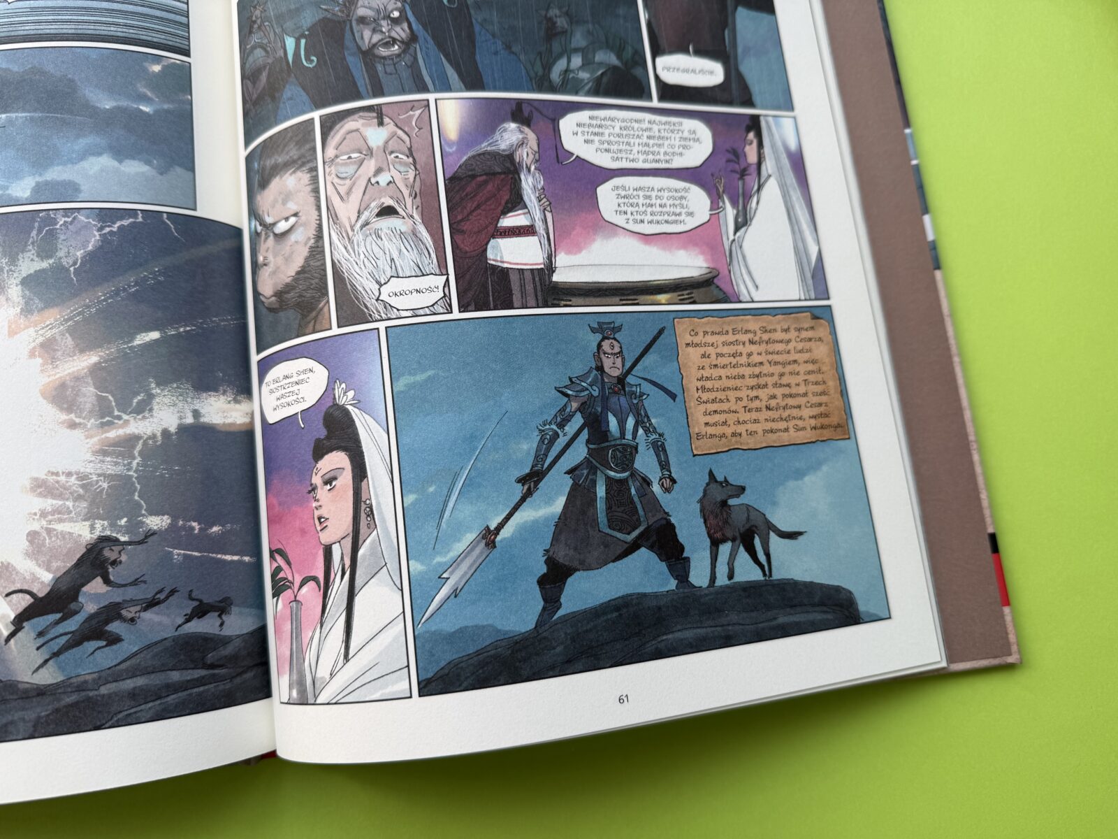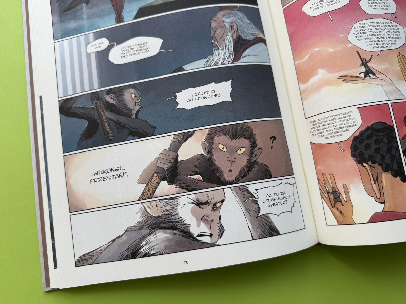 Opowieść śledzi początki Sun Wukonga – istoty zrodzonej z kamienia, która bardzo szybko przekracza granice przypisane jej przez świat. Uczy się, zdobywa moce, rośnie w siłę, ale przede wszystkim rośnie w ambicję. I to właśnie ta ambicja staje się osią całej historii. Nie chodzi tu bowiem o drogę bohatera w klasycznym sensie, lecz o drogę buntownika, który nie chce zaakceptować żadnej hierarchii – nawet tej boskiej. W albumie pięknie wydanym w Polsce przez Egmont widać, że nie jest to opowieść o harmonii, lecz o napięciu między jednostką a porządkiem świata.