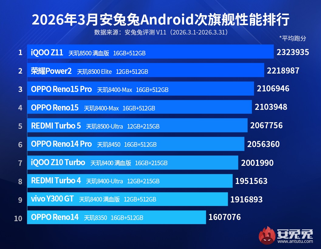 Liderami tej kategorii są iQOO Z11 oraz Honor Power 2, napędzane przez chipset Dimensity 8500. Tuż za nimi uplasowały się modele z serii Oppo Reno 15 (z procesorami Dimensity 8400). MediaTek zdominował ten segment dzięki doskonałemu balansowi wydajności i ceny, oferując użytkownikom moc, która jeszcze w zeszłym roku była zarezerwowana wyłącznie dla najdroższych flagowców.